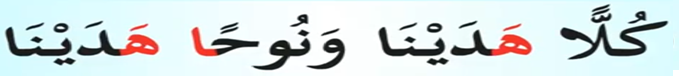 İzhara sebebiyet veren Ha harfi yine kırmızı karakterde örnekler üzerinde gösterdik. Mutlaka ihfa da olduğu gibi yine bize ya sakin bir nun harfi ya da tenvin gerekiyor. İhfa da olduğu gibi izhara yine nun sesi üzerinde icra ediliyor kendisinden sonra gelen harfler ya bu nun sesinin akıtılması ki buna ihfa diyoruz ya da akıt akıtılması ki buna da İzhar diyoruz.
