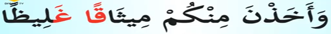 Nisa Süresi 21. Ayet. Ğayin harfi de yine izhara sebep olan harflerden bir tanesi.