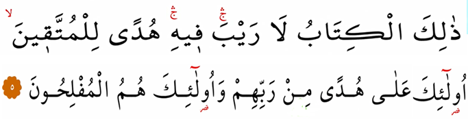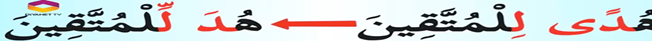 Bakara Süresi 2. Ayet. Bir iki Üstün huden daha sonra lam harfi geliyor lam harfi geldiğinde hemen burada bir kural meydana geliyor. Huden Lil zor telaffuz etmek. Dolayısıyla ne yapıyoruz? Hemen burada şeddeli lam harfini ve bir önceki harfin tenvin bir tanesini devre dışı bırakıyoruz. Yani oda fetha hareke dönüyor tekrar gösteriyorum.