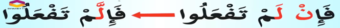 Bakara Süresi 24. Ayet. Bu tenvin de olabilirdi cezimli nun sakin nun da olabilirdi. Şimdi yazıda görüyoruz cezimli bir nun ve daha sonra lam harfi te telaffuz etmekte insan zorlanabilir hemen kuralımız tecvit devreye giriyor.